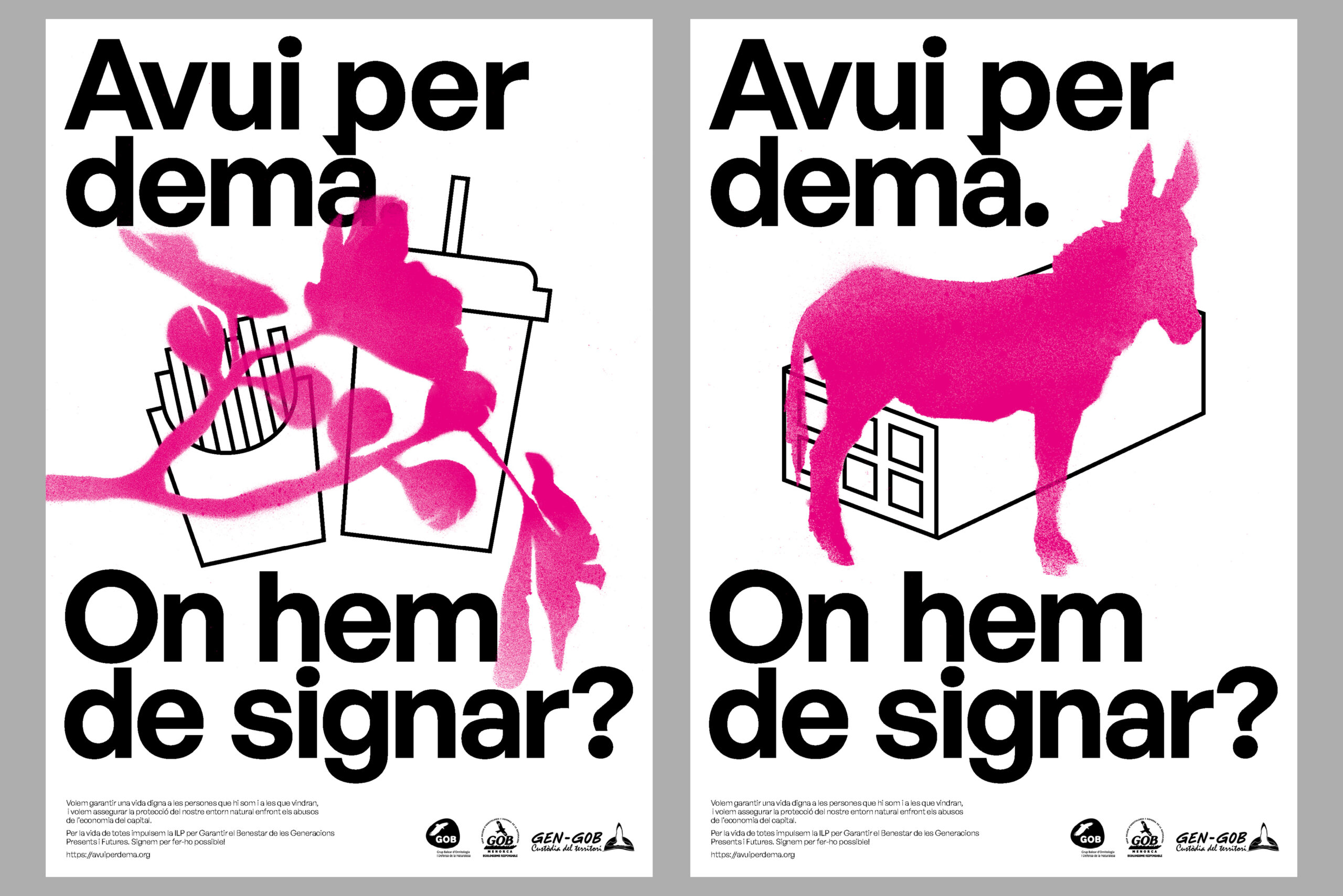 Per fer difusió de la iniciativa hem desenvolupat la identitat gràfica a partir de diferents cartells, dels quals també s’han imprès pancartes. També hem desenvolupat la pàgina web de la campanya.